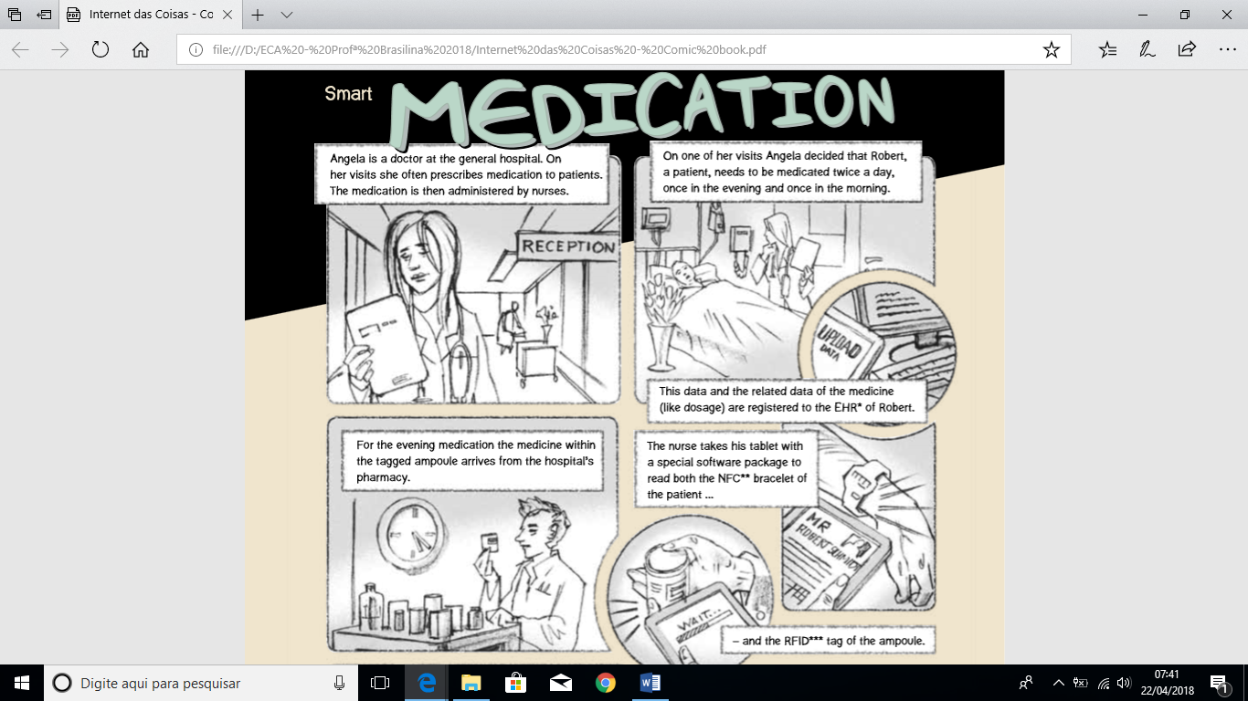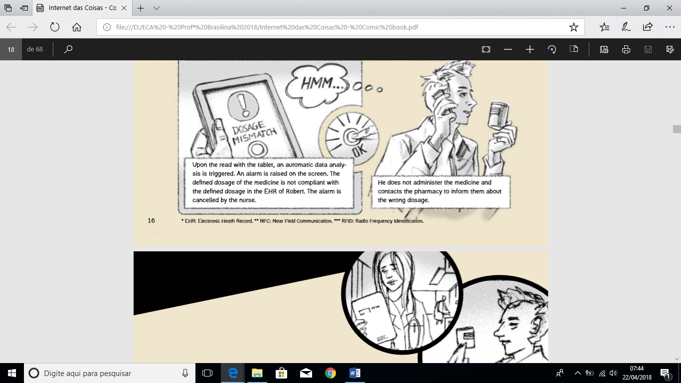 A leitura deste comic book revela-nos, por exemplo, a seguinte experiência na área hospitalar, exemplificando, pois, o emprego da Internet das Coisas na solução de problemas do cotidiano: